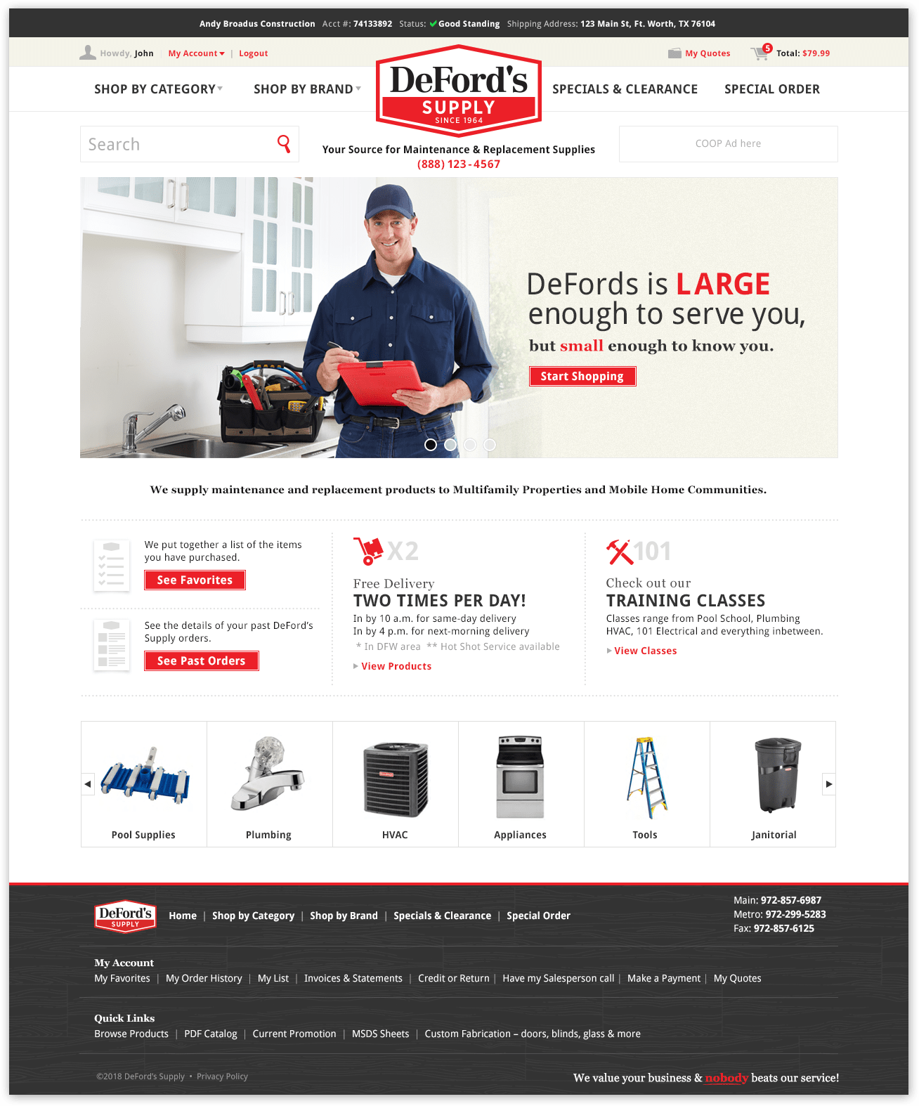 Outcome:Active Lightning helped a non-technical company to put their business online. They went from print catalogs, outside sales people with inside salespeople on phones to a system where customers and salespeople can handle their own quotes and orders without going through an order-taker on a phone. We enabled customers to get control over invoices and quotes without needing to involve DeFord's staff. Maintenance people can put in orders on their smartphones. There is whole system to control who in a customer company can approve orders. A common business task is to get a quote and then when approved to turn it into an order. We enable this to happen online from any location at any time of day. Customers can choose to get notifications by email or text.