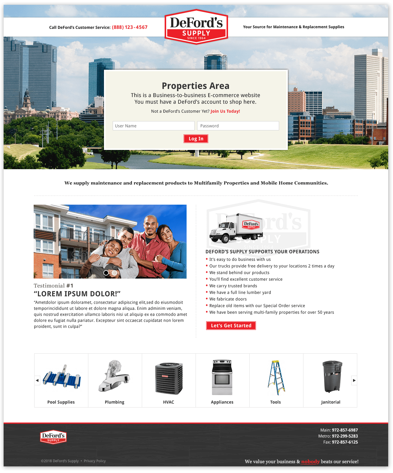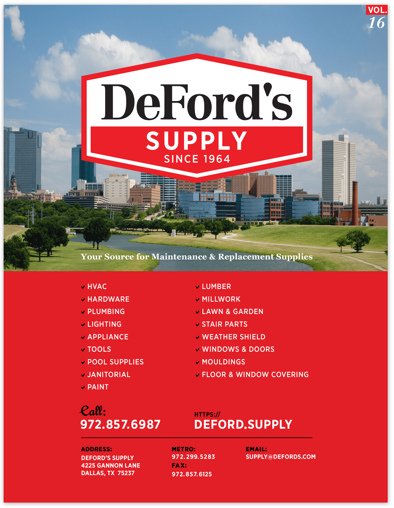 VISIT SITE The DeFord Lumber Company was founded in 1964 in Duncanville, Texas by the DeFord family. In addition to providing building materials, for many years DeFord's featured a family-friendly hardware store known for its unique inventory and great service. As the building and supply industry changed, DeFord's changed with it, leaving the retail hardware and lighting markets behind and focusing exclusively on supplying professional builders and property managers. In the 1990's, DeFord's Millwork, Custom Millwork and Wholesale Maintenance Supply divisions were created. Active Lightning worked with DeFord's to create a new business identity for the Wholesale Maintenance Supply division.